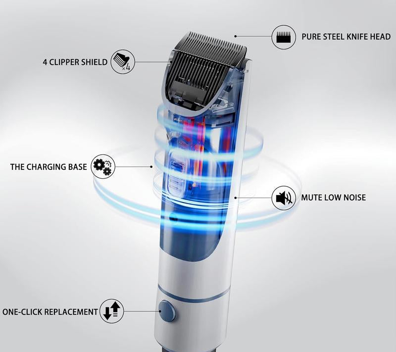 - 7 speed/power modes for suction + grooming intensity